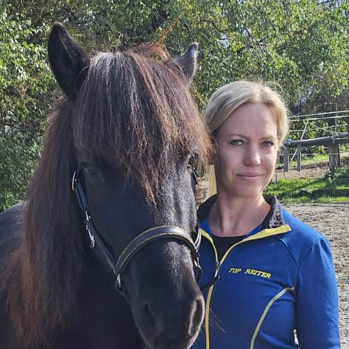 Reiten und Pferde lieben gelernt, habe ich in einer typischen Reitschule. Nach einer erfolgreichen Jugend im Turniergeschehen habe ich mir als junge Erwachsene meinen Peppi als zukünftiges Turnierpferd gekauft. Die Pläne und Hoffnungen waren groß – gekommen ist alles anders. Peppi hat mir sehr schnell und deutlich gezeigt, dass das mir bisher bekannte Ausbildungssystem bei ihm keinen Anklang findet. Nach viel Verzeiflung, Frust und Tränen haben wir uns gemeinsam auf die Suche nach einem neuen Weg gemacht. Dabei durfte ich in unterschiedliche Reitweisen und Ausbildungssysteme hineinfühlen. In manchen fühlte ich mich mehr und in anderen weniger zuhause. Auch wenn es mich manchmal an den Rand der Verzweiflung getrieben hat, so weiß ich auch: mit einem „funktionierenden“ Pferd hätte ich mich nicht auf diese Reise begeben und ich bin sehr dankbar Peppi nach so langer Zeit immer noch an meiner Seite zu haben. Und weil Pferdeausbildung immer auch Persönlichkeitsentwicklung bedeutet, habe ich für mich selbst sehr viel dazu gelernt und kann die Liebe zu den Pferden und meine eigenen Stärken jetzt viel mehr genießen. Nach der Horse Tensegrity Ausbildung, sowie Weiterbildungen bei Anna kann ich auf viele unterschiedliche Möglichkeiten und Wege zurück greifen um Pferd-Mensch-Paare bestmöglich zu unterstützen und auf ihrem Weg im vielseitigen und gesunderhaltenden Training zu begleiten. Und weil „alles kann, und nichts muss“ probiere ich mich mit meinen Pferden viel aus und bilde mich in unterschiedlichen Bereichen auch regelmäßig weiter. Ein empathischer und feinfühliger Umgang mit meinem Gegenüber (sowohl Mensch, als auch Pferd) ist mir wichtig und ich lasse sowohl klare Kommunikation, als auch Sensibilität, Bewegungsverständnis und Körpergefühl mit ins Training einfließen.